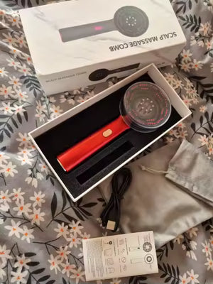 Elektronischer Rotlicht-Massagekamm zur äußerlichen Anwendung auf der Kopfhaut.